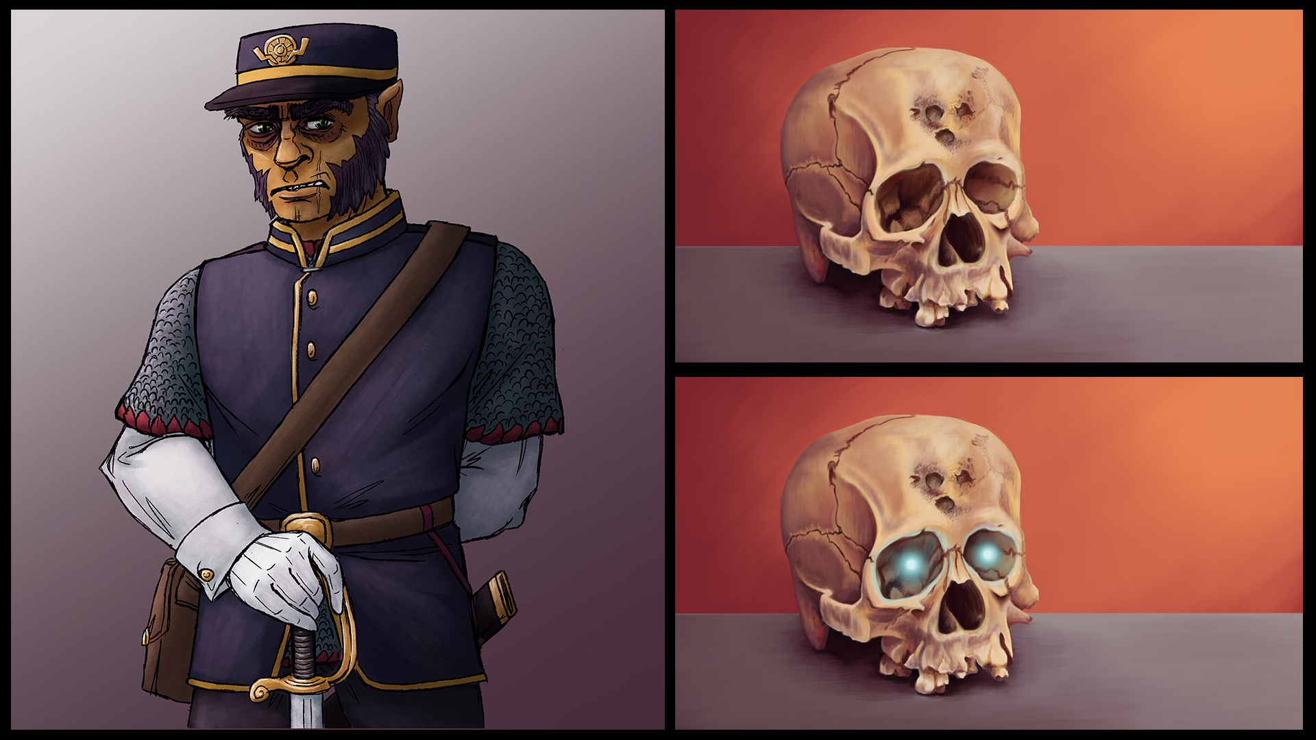 Over the past year I have started playing tabletop games with some of my friends and colleagues, which I find is a brilliant opportunity to practice improvisation and storytelling. It also allows me to experiment with drawing characters and locations from only a rough description or simple blurb.