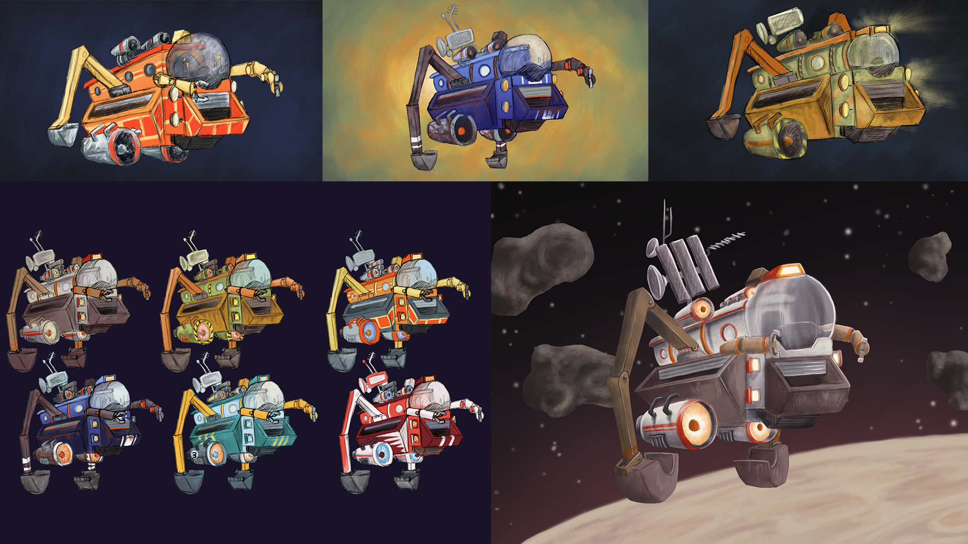 Pre-Production for my third-year major project, Space-ial Interests, centered around a scavenging alien and their junk-collecting spaceship.