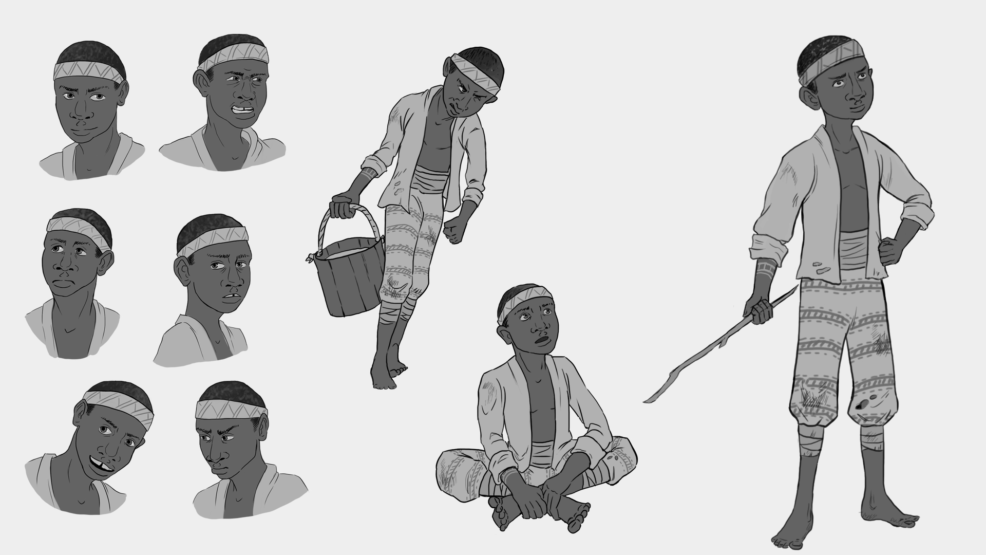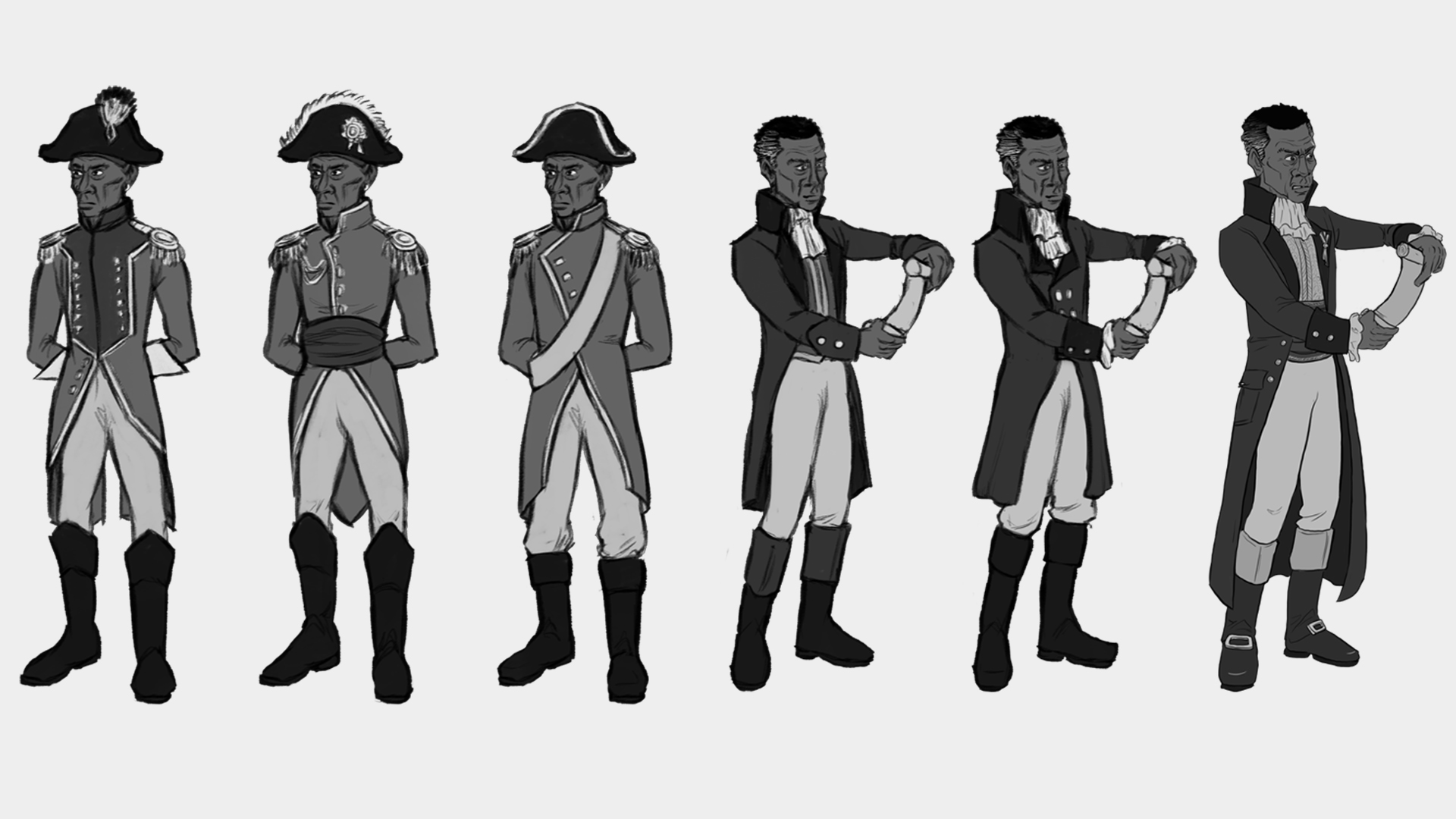 Character concept art for a brief where child and adult versions of a historical figure were to be designed. I chose to study Toussaint Louverture, the Haitian revolutionary, as I found him to be a facinating man with many contradictory qualities.
